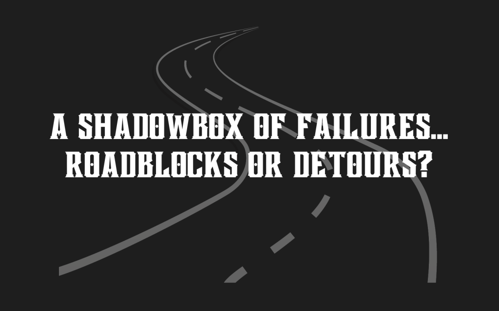 I used to hit roadblocks. Now I see a multitude of amazing detours. Strive for a life where you end up with a huge shadowbox of accomplishments instead of a shadowbox of failures. Choose the detours.